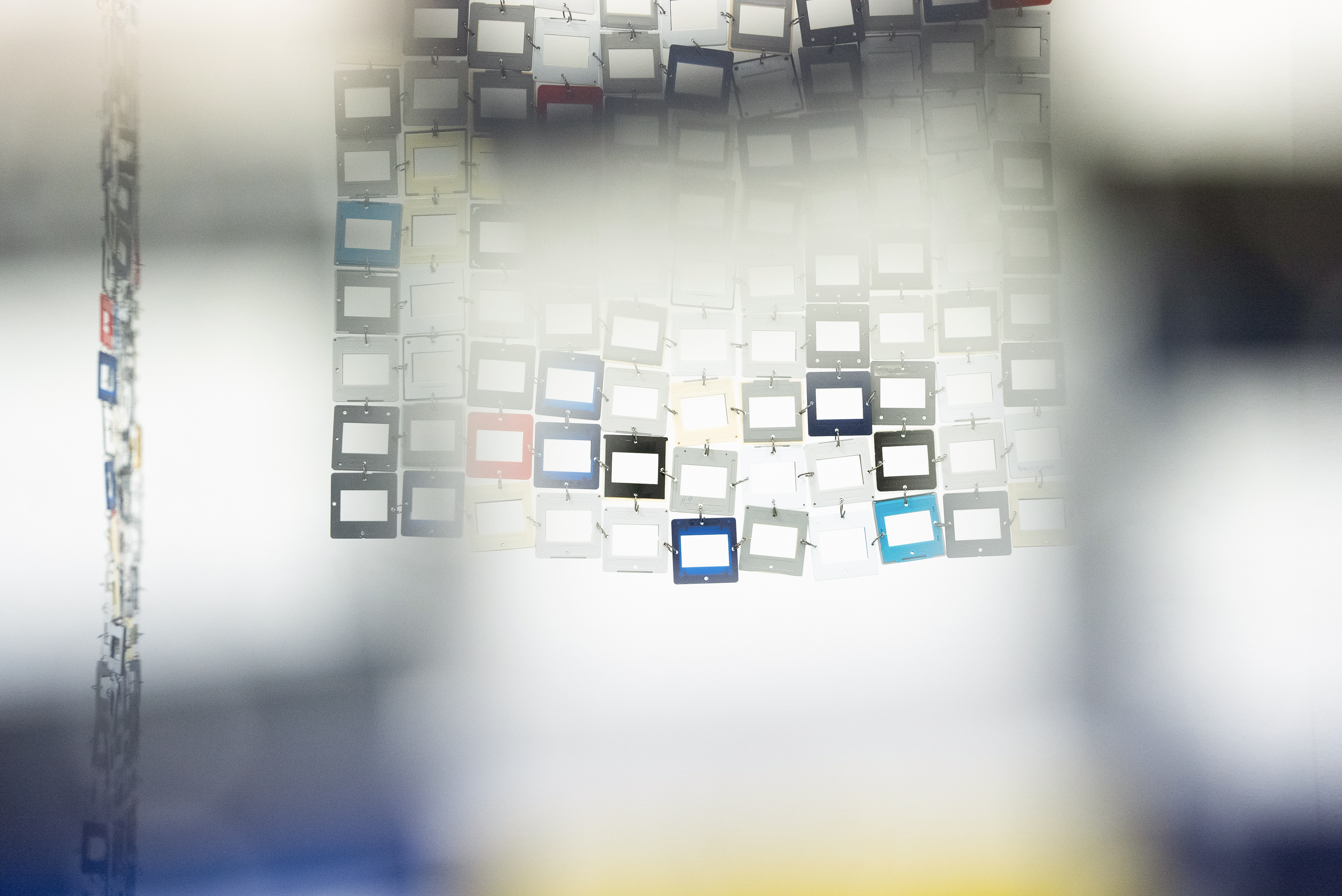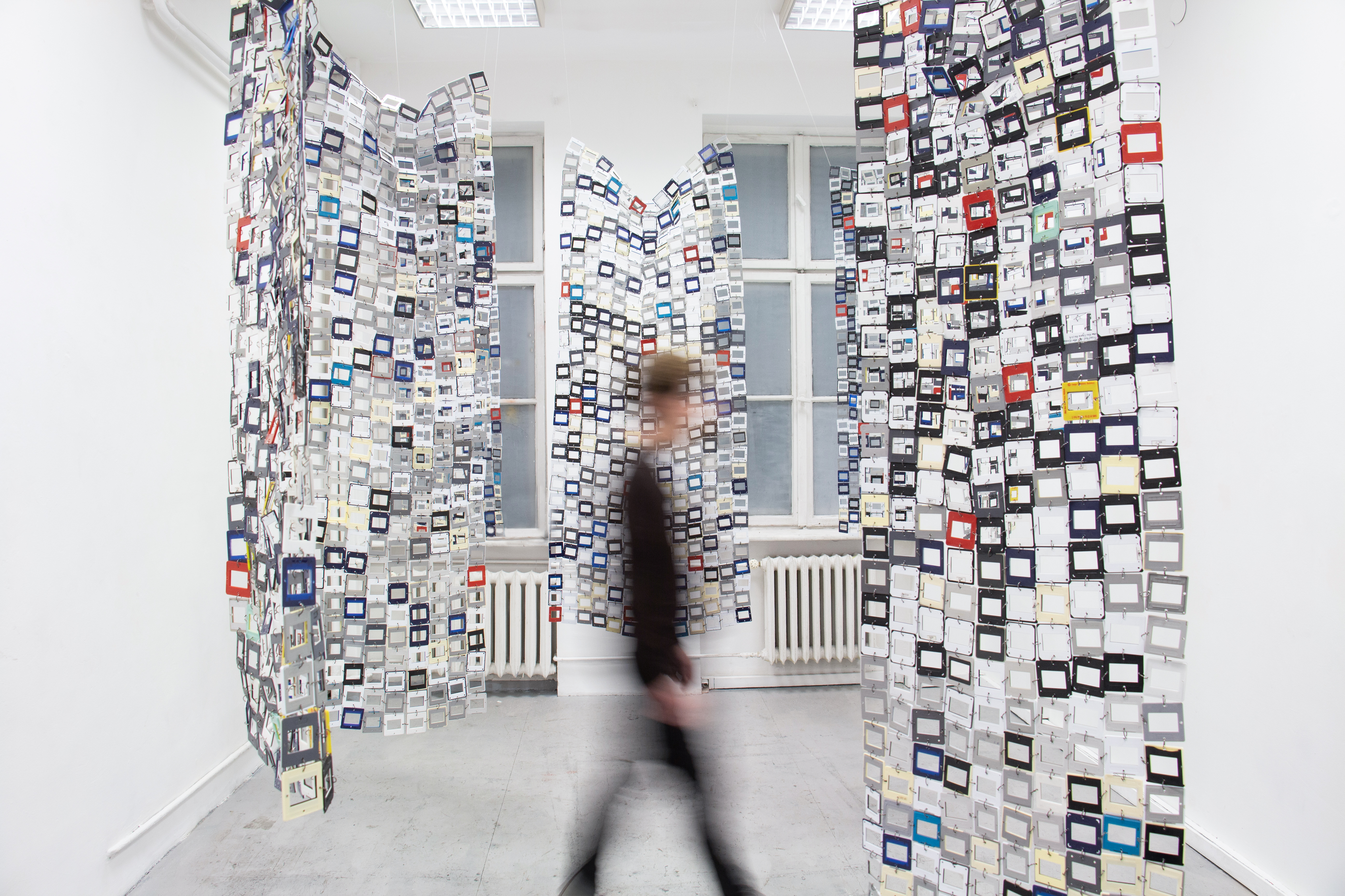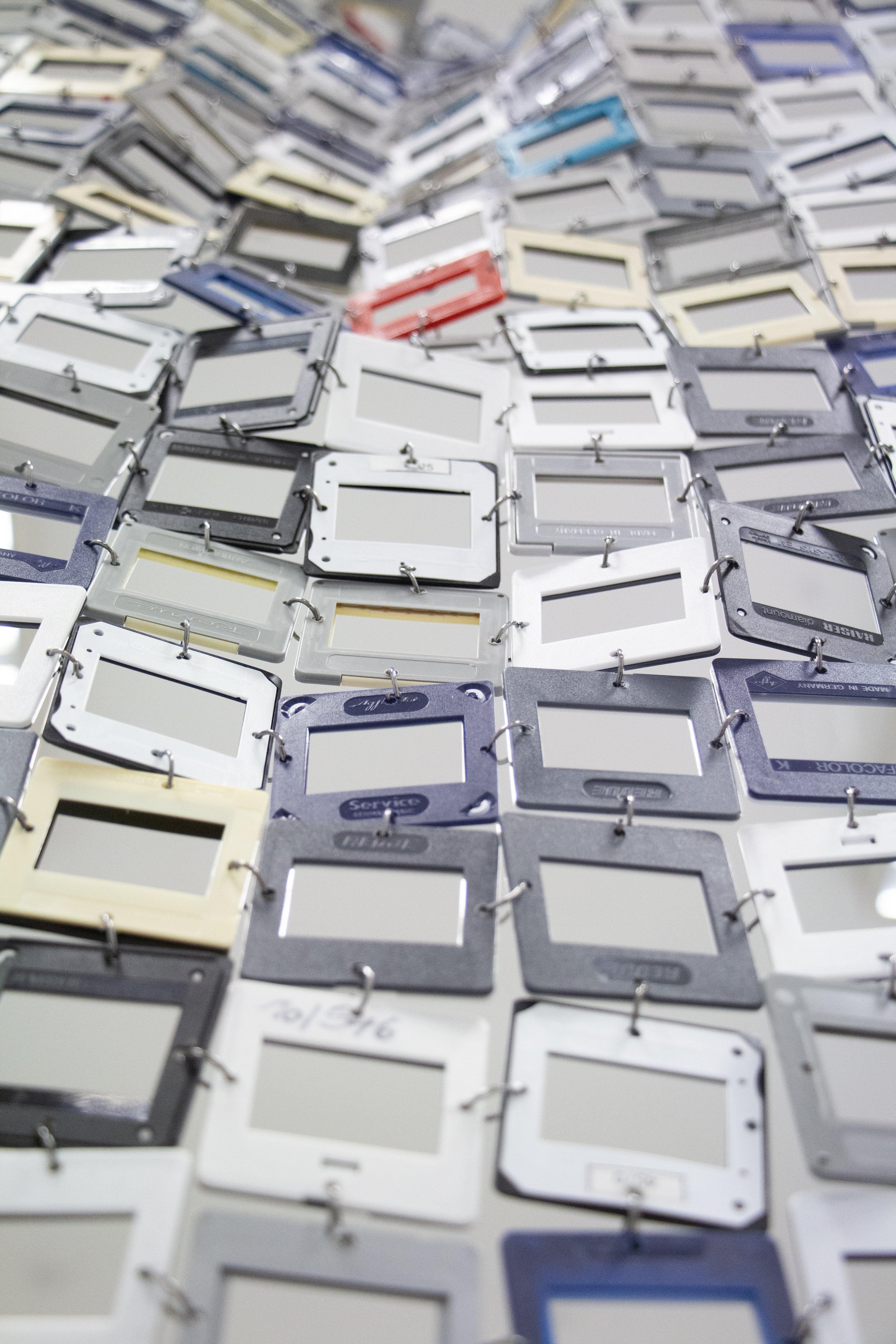 Object / Installation. used slides, metal. 5x5 cm, 3265 pieces